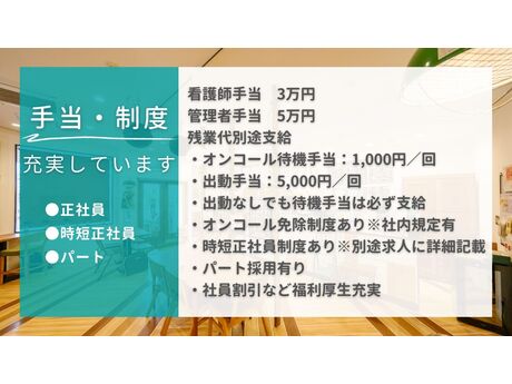 管理者手当・オンコール手当・出動手当あり(待機のみでも支給)