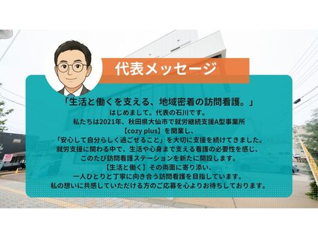 就労継続支援A型【cozy plus】運営法人が、生活と就労に寄り添う看護を実現します。