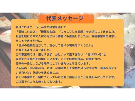 そのためのステップとなる事業所を一緒に作っていきたいです。