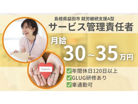 ✔ 2026年9月オープン!立ち上げから関われる✔ 年間休日120日以上/土日祝休みで働きやすい✔ 月給30~35万円◎経験をしっかり評価✔ GLUG本部の研修・サポート体制ありで安心✔ 午前/午後で業務分担◎サビ管業務に集中できる✔ 髪色・ネイルOK(業務に支障のない範囲)✔ 裁量あり◎事業づくりに関われるやりがい✔引っ越し手当(応相談)支給いたします!