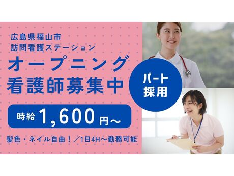 ・新規オープンの訪問看護ステーション・パート採用・4週8休/働き方相談可(正社員・時短正社員・パート)・社用車での訪問&通勤可能
