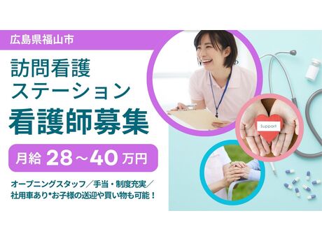 ・新規オープンの訪問看護ステーション・月給28万円~・4週8休/働き方相談可(正社員・時短正社員・パート)・社用車での訪問&通勤可能